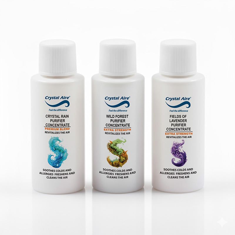 These all-natural concentrates are water-soluble, making them safe to use in Crystal Aire Air purifiers, and they are alcohol-free, non-toxic, and concentrated. Add a few drops of these concentrates to your Crystal Aire Air purifier and enjoy the benefits of aromatherapy while eliminating unpleasant odours from your living space.