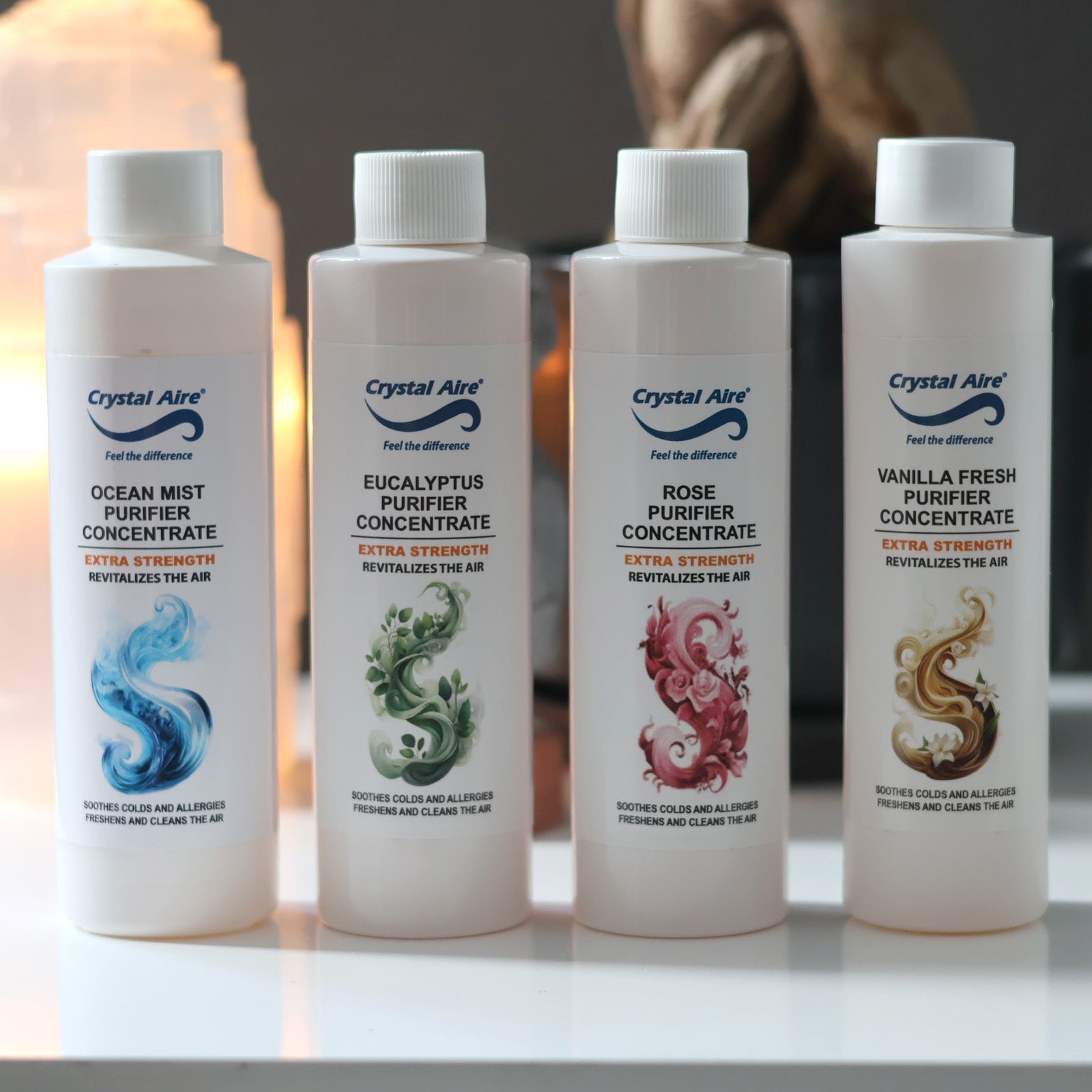 Crystal Aire 200ml Rose, Vanilla, Eucalyptus and Ocean Mist Air Purifier Concentrates - 4 Pack