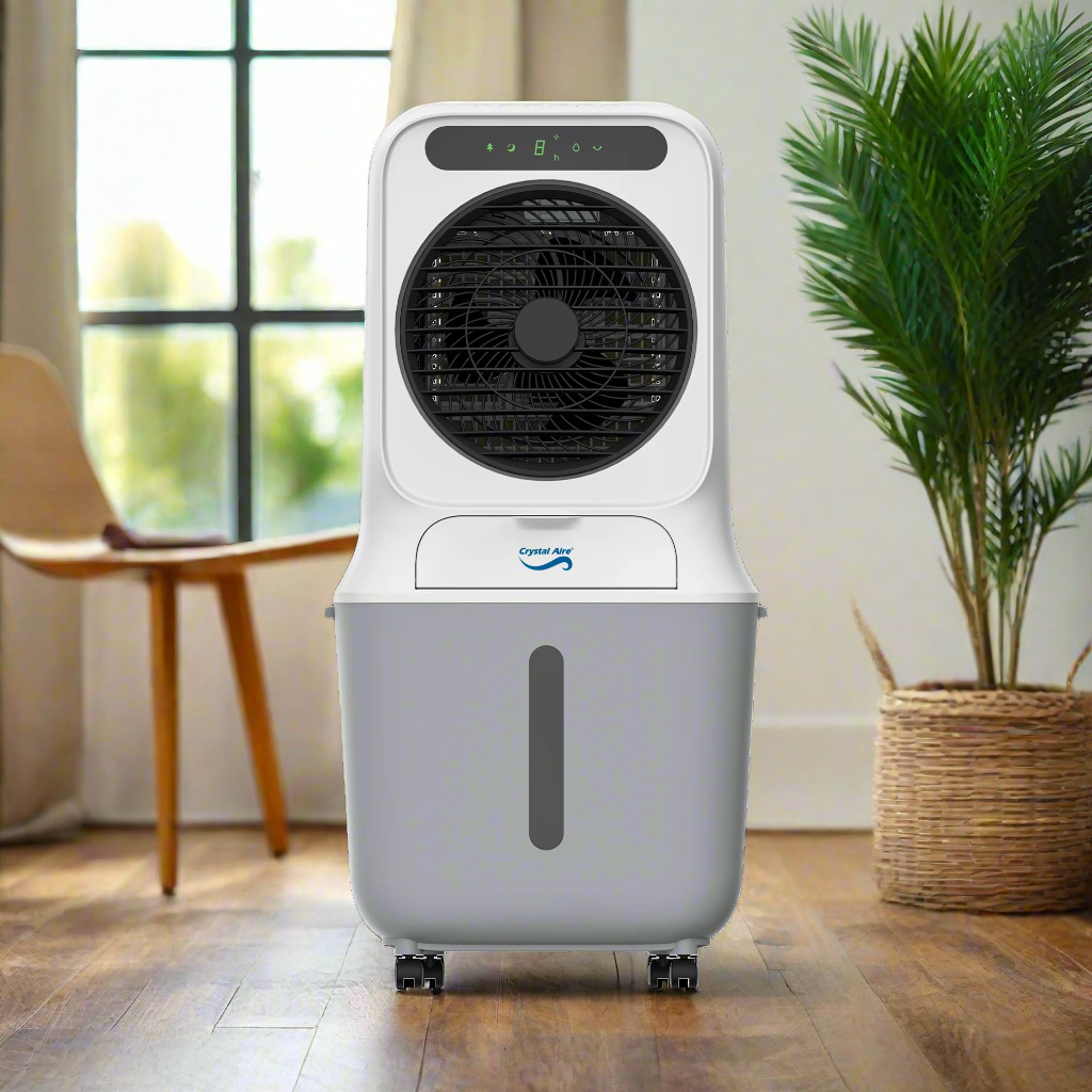 Stay cool, breathe fresh. The Crystal Aire 25L Sterilization Air Cooler has a powerful Vortex fan technology for an unparalleled home cooling experience. Designed for long-range airflow, this cooler is built to perform in style.
