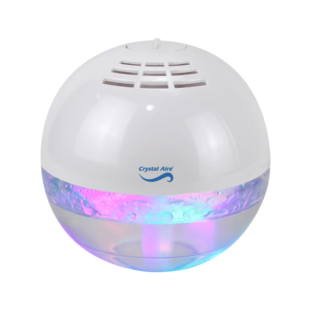 Revitalize your living space and breathe easy with the new Crystal Aire LED Mini Purifier. This round-topped white air purifier effectively eliminates impurities and bad odours from the air using only water as a filter. It's especially beneficial for controlling allergens, neutralizing paint fumes, and eliminating pollen spores and dust from the air for a healthier breathing experience. With its USB Power, high-grade ABS & PP material construction, and easy care instructions, the Crystal Aire LED Mini Purifier is the perfect tool to enhance your home's air quality.