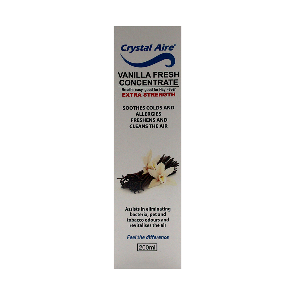 - Experience the soothing, uplifting power of the 200ml Vanilla Crystal Aire Liquid Concentrate. Bring the warmth of this classic scent into your life, and enjoy the benefits of a cleaner, fresher, and more inviting atmosphere. Order your bottle today, and discover the difference Crystal Aire can make in your space.