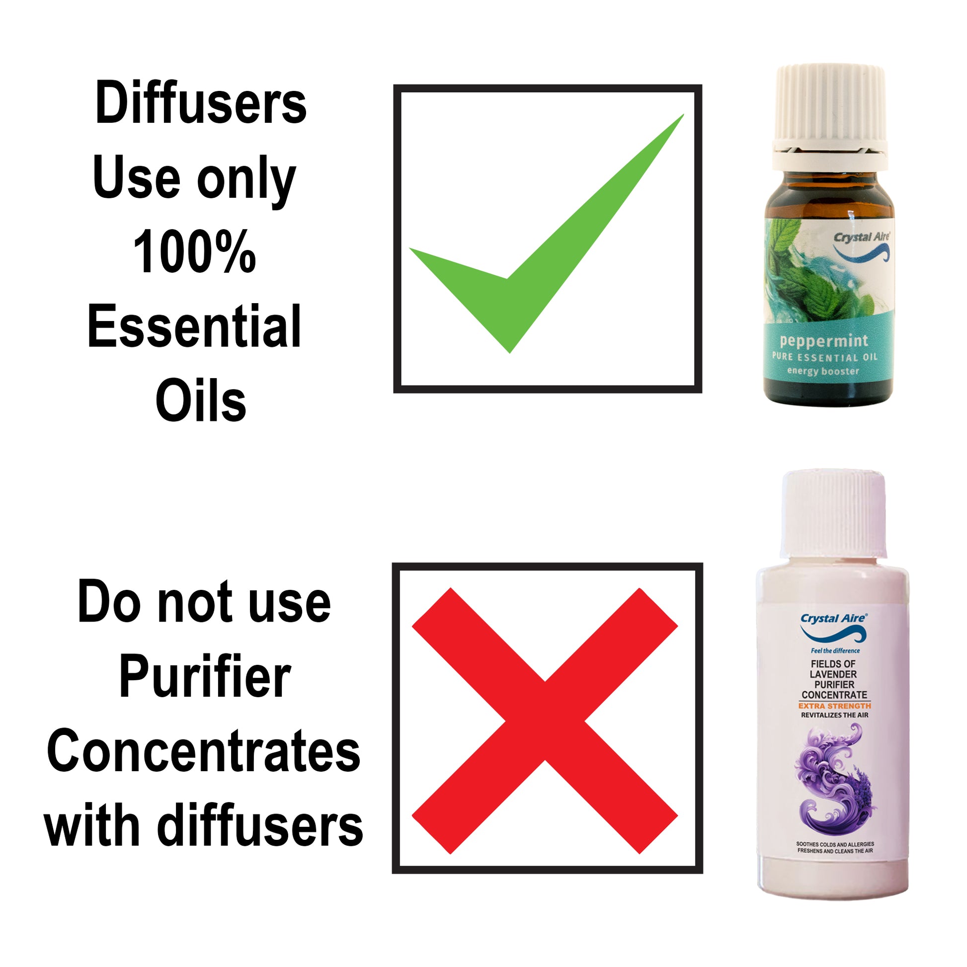 It is strongly recommended to only use Crystal Aire Essential Oils in the diffuser