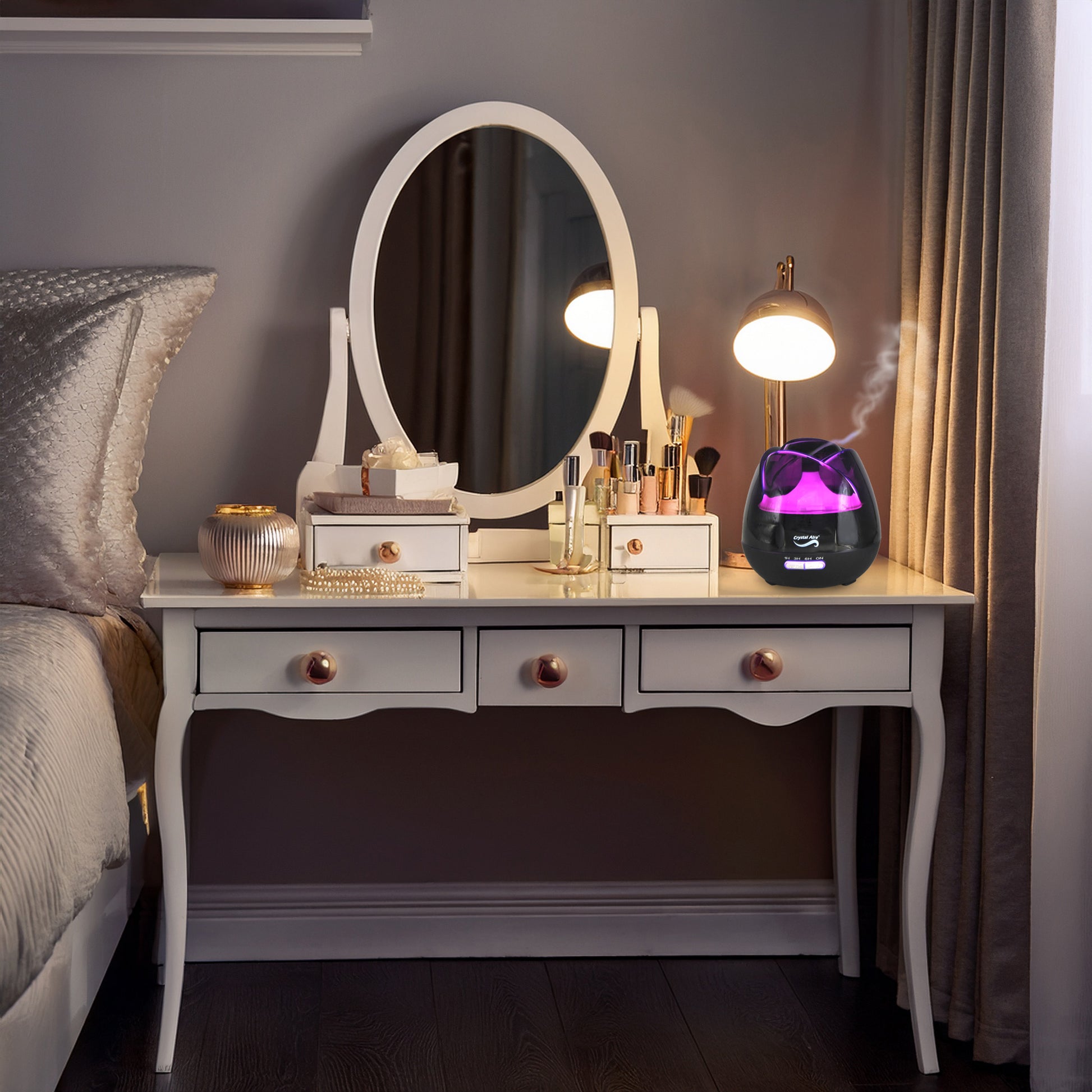 - Humidify your living space to prevent dry, stuffy air and fill your home with lovely fragrances using essential aroma oils.