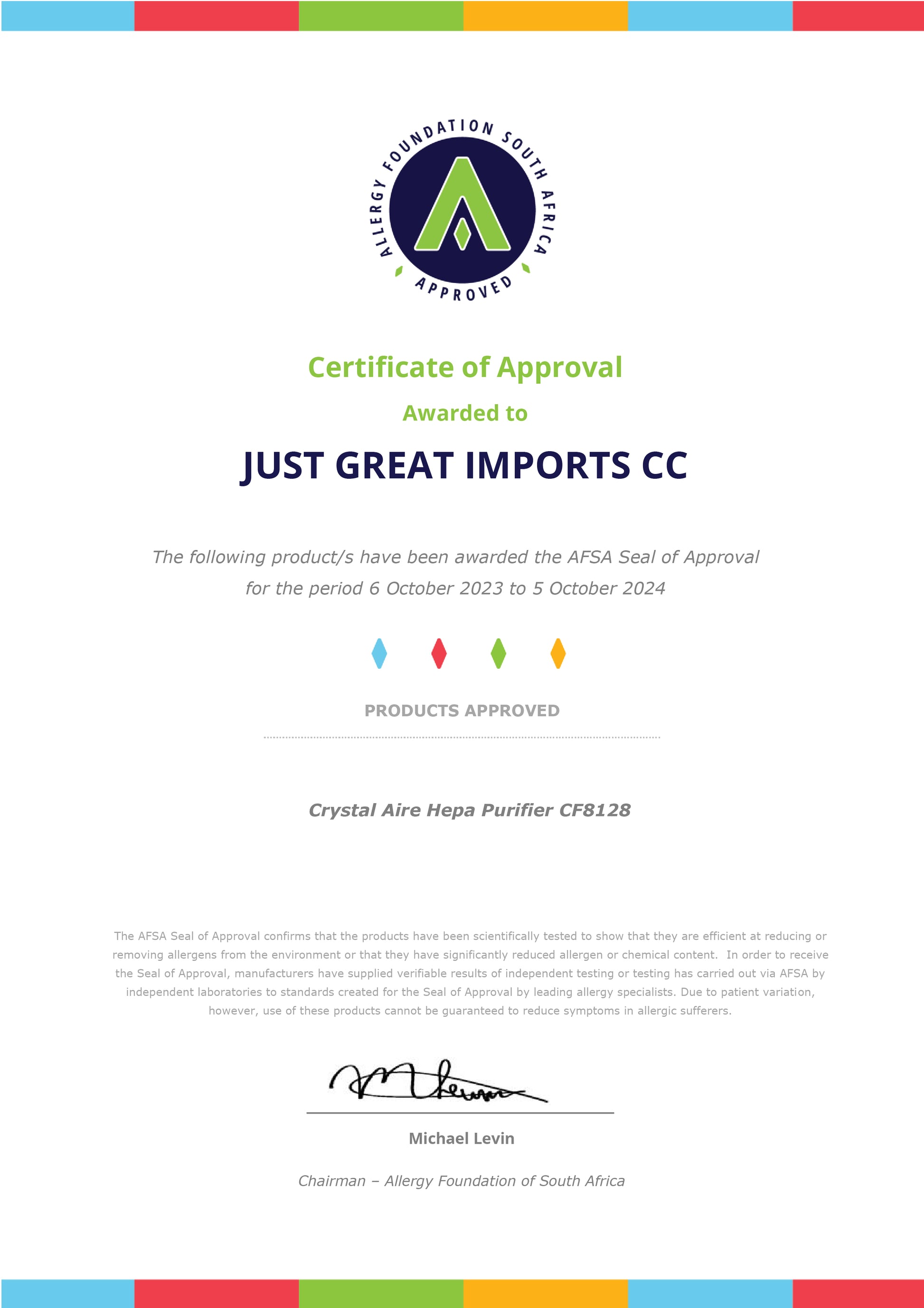 - SA Allergy Foundation Approved: Recognized for its effectiveness in reducing allergens and improving air quality.